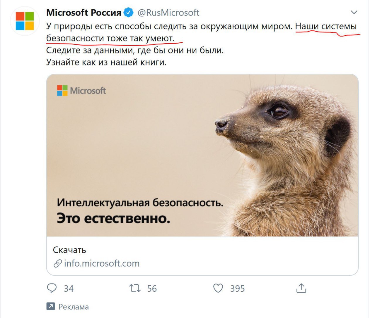 На днях в Майкрософт совершили подобный каминг-аут. Они опубликовали в Твиттере следующий пост:
