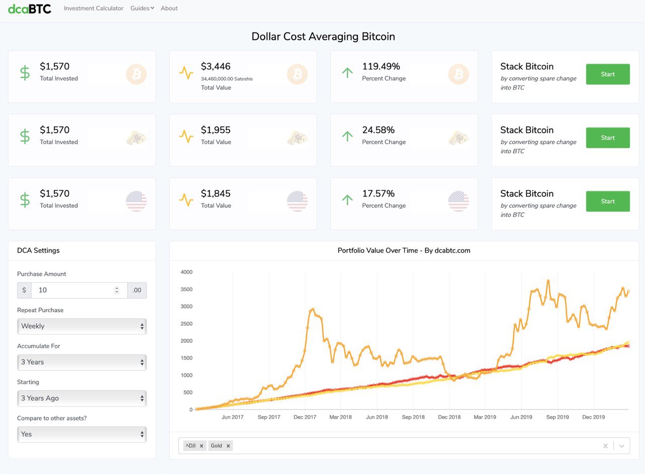 Если вам понравилась идея метода DCA (усреднения долларовой цены актива) то можете решить для себя какую сумму, вы готовы еженедельно вкладывать в биткоин, чтобы даже не замечать этого. Думаю $10 долларов в неделю под силу каждому, даже студенту и пенсионеру. Начните свой путь к финансовой свободе прямо сегодня. Я пользуюсь этим методом уже несколько лет и очень доволен результатом. Для простоты планирования есть даже специальный он-лайн калькулятор.