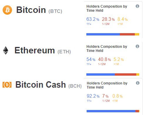 Анализ также показал, что за последний год более 63,2% биткоинов не меняли владельцев. У эфириума этот показатель ниже и составляет 54%. А рекордсменом являются “железные руки” холдеров Bitcoin Cash. Более 92.2% BCH не покидали своих кошельков. Есть еще один факт, описанный исследователем. Количество биткоинов на кошельках людей, называемых «Железные руки» постоянно увеличивается. Чего они ждут? И как долго намерены держать и увеличивать депозит в BTC?