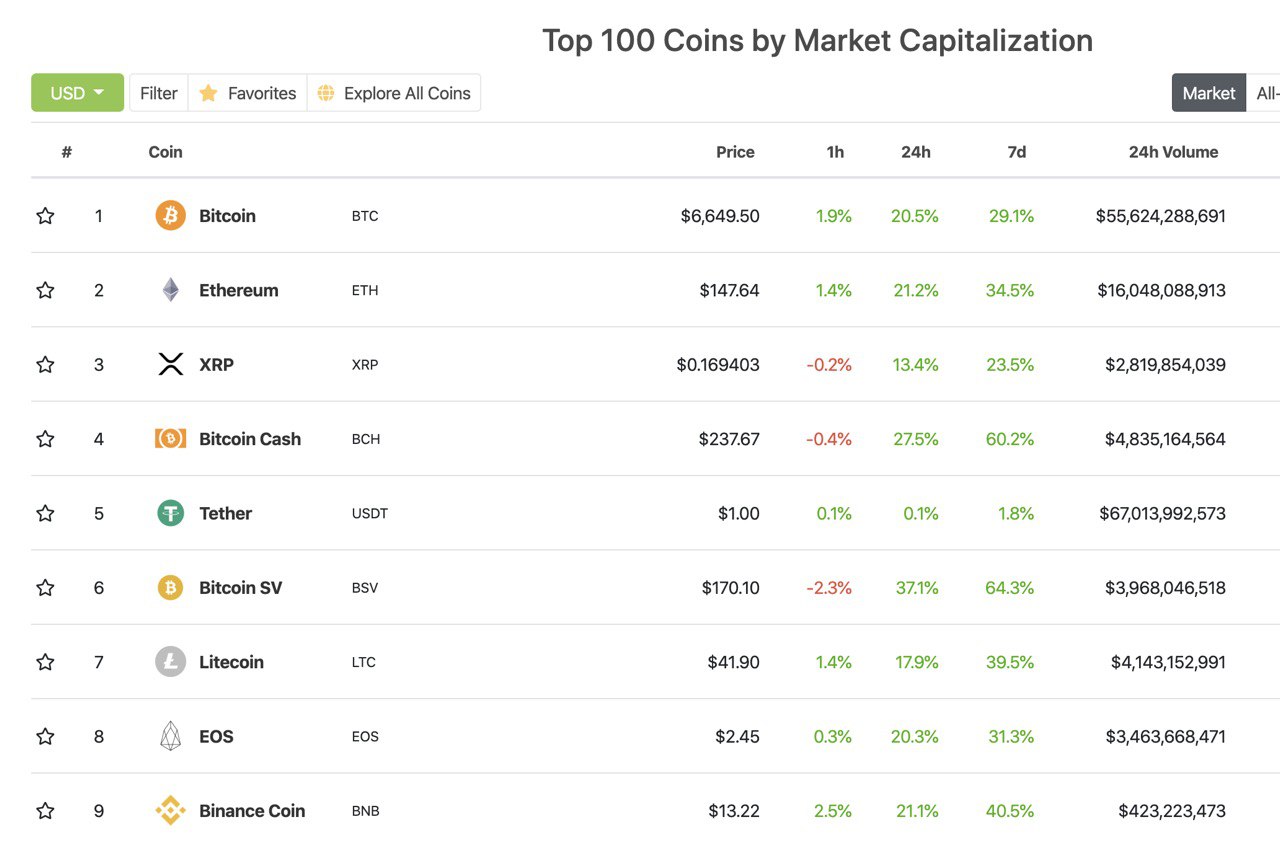 Закончилась очень важная для биткоина неделя. Прямо сейчас рост цены за 7 дней составил 29%, а эфира 34,5%, в то же время падение основных фондовых индексов, с учетом триллионов вливаний ФРС за те же 7 дней составило 20%.