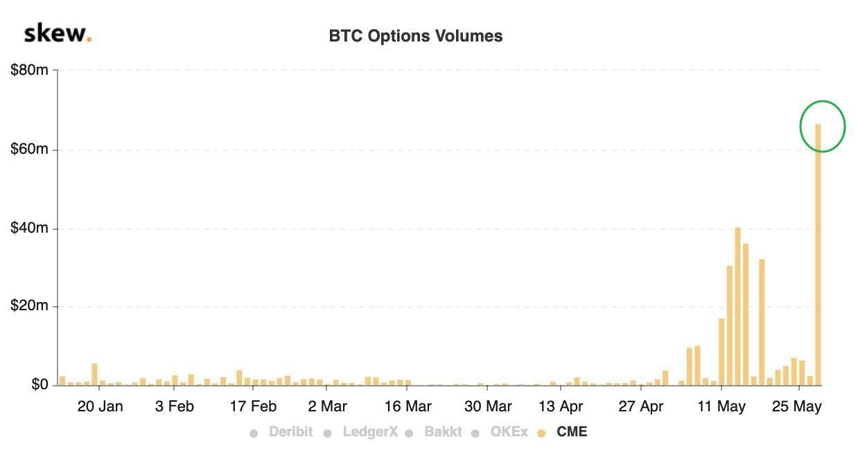 Стоить заметить, что на фоне пресс конференции, рынки не обвалились, а Nasdaq весело пошел вверх. Растут также акции технологических компаний. Но самое интересное, что на фьючерсном рынке на Чикагской товарной биржи (СМЕ) установлен новый рекорд роста ставок на опционы на биткоин. Это не говорит о предстоящем росте, скорее об увеличении волатильности на рынке биткоина в ближайшие месяцы.