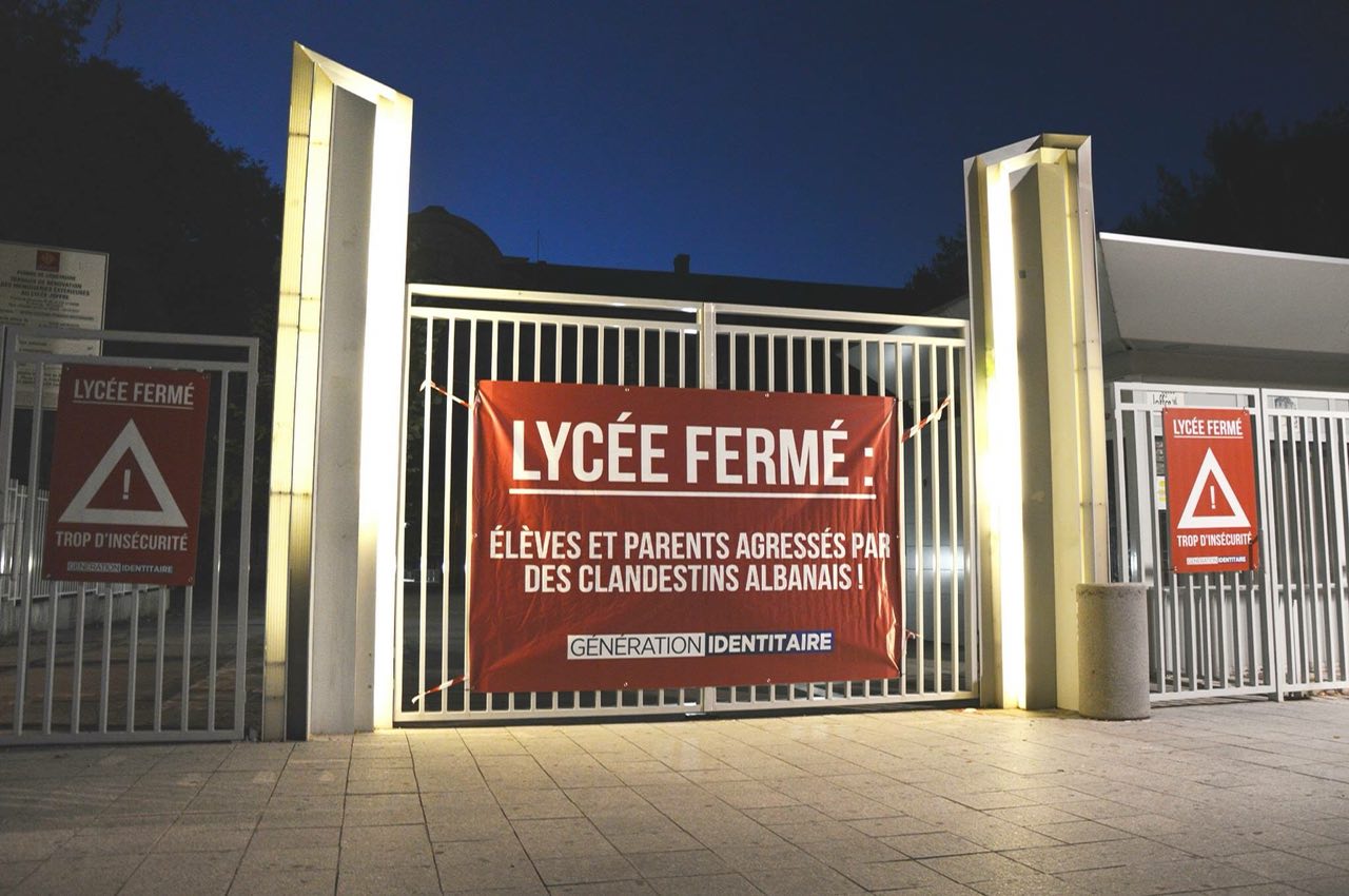 Ce matin, Génération Identitaire est venu fermer symboliquement le lycée pour dénoncer l’insécurité récurrente dans ses alentours. Puisque les élèves n’y connaissent pas la tranquilité, nous avons préféré les protéger grâce à cette fermeture. Mais au-delà des nécessaires renforcements de police promis par la mairie pour ce quartier, la seule manière de régler ce problème en profondeur consiste à renvoyer dans leurs pays ces immigrés illégaux. N’attendons pas d’avoir un meurtre avant de réagir, expulsons ces clandestins !