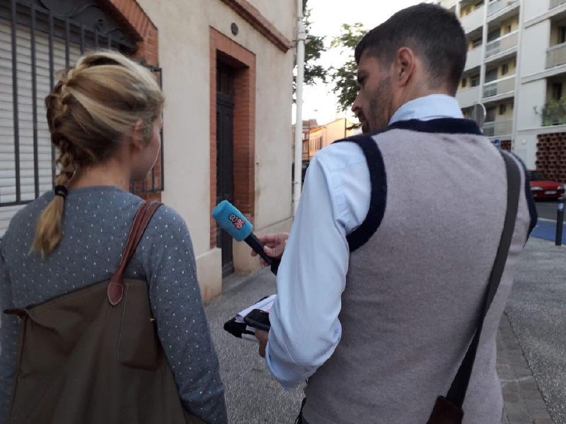 🔵⚪️ Les militants toulousains de Génération Identitaire étaient interviewés sur le terrain lors d’un stickage par France 3 et la radio locale 100/100 ! 🎥🎙