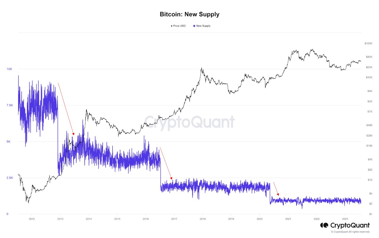 📊При любых ценовых колебаниях, сохраняется обратная корреляция между долгосрочной тенденцией роста цены BTC и добычей новых монет