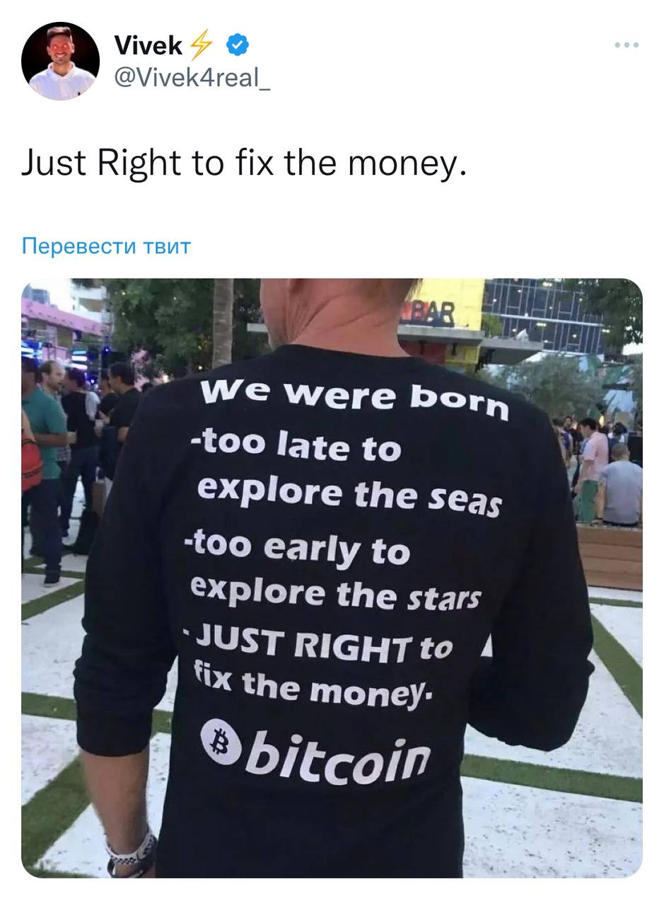 👌«Мы рождены слишком поздно для того, чтобы исследовать моря, и слишком рано, чтобы исследовать космос. Но в самый раз, чтобы исправить деньги! Bitcoin»
