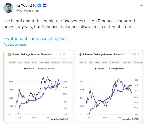 "Я слышал о «банковском риске и рисках неплатежеспособности Binance» сотни раз в течение многих лет. Но их пользовательские балансы всегда говорят о другом"