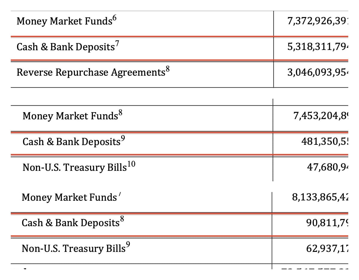 Теоретически, Tether должен получать купонные выплаты от казначейских облигаций на общую сумму $70 млрд, поэтому такое схлопывание по кэшу может говорить либо о реинвестировании, либо о чем-то странном