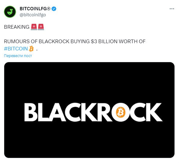 🚨Ходят слухи, что BlackRock совершили покупку биткоинов на $3 млрд 🤔