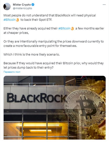 "Большинство людей не понимают, что BlackRock потребуется физический Bitcoin для поддержки их спотового ETF.
