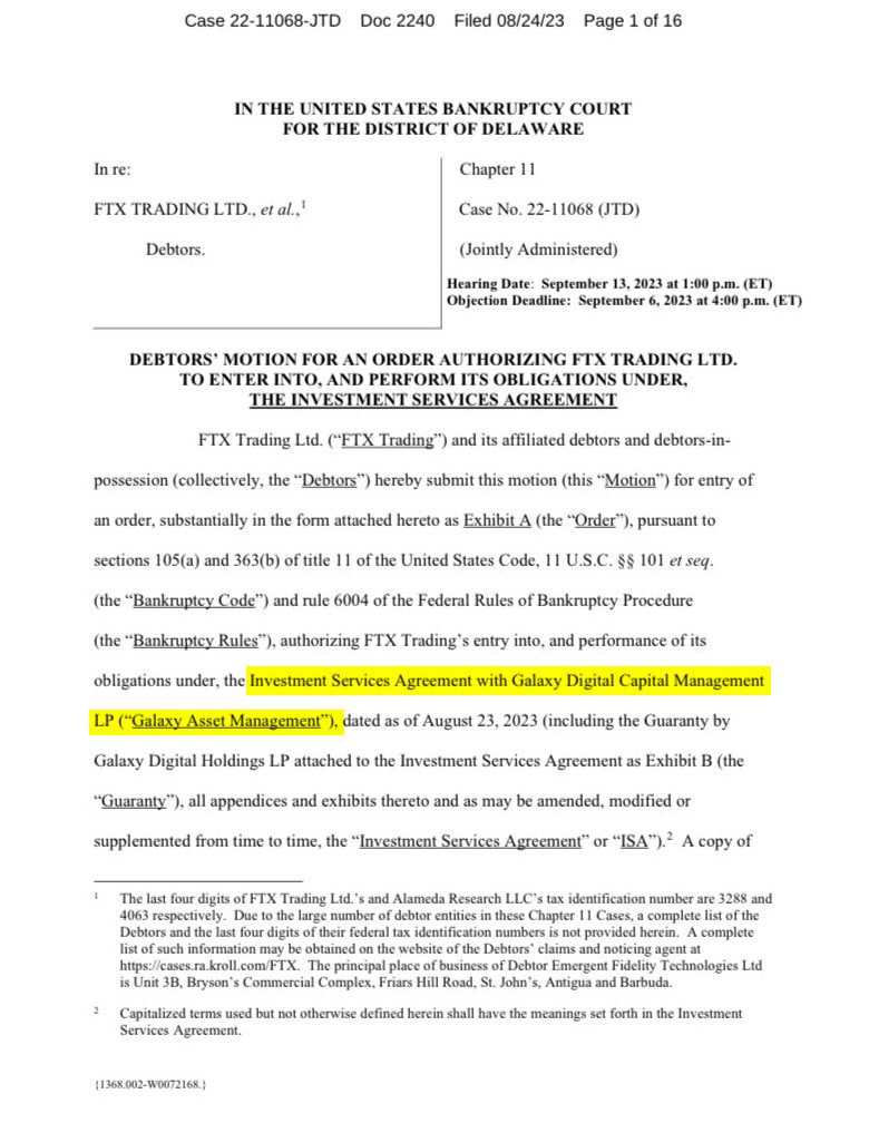 При этом FTX запрашивает разрешение на привлечение для содействия этой процедуре инвестиционной компании Galaxy Майка Новограца