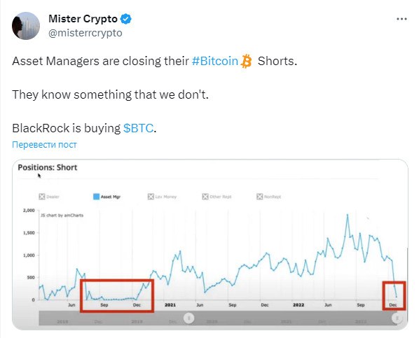 🤔 "Управляющие активами закрывают свои короткие позиции по биткоину.