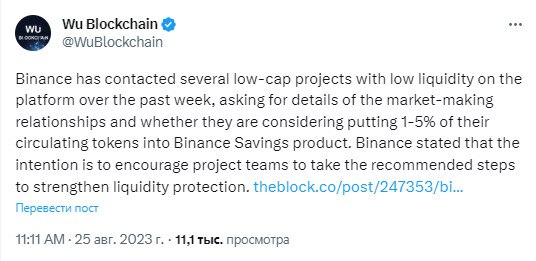 🤔За последнюю неделю Binance связалась с несколькими проектами с низкой капитализацией и низкой ликвидностью на платформе, запросив подробную информацию об их отношениях с маркетмейкерами и о том, рассматривают ли они возможность размещения 1–5% от своих токенов в продукт Binance Savings. Binance заявила, что намерение состоит в том, чтобы побудить проектные команды предпринять рекомендуемые шаги для усиления защиты ликвидности.