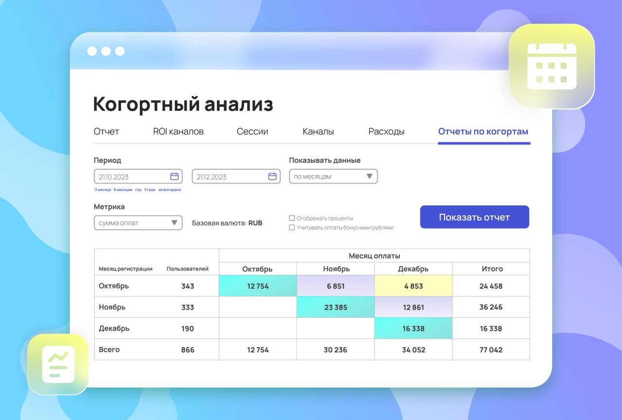 ✔️ оценить окупаемость трафика не только в рамках одной воронки, но и спустя месяцы.