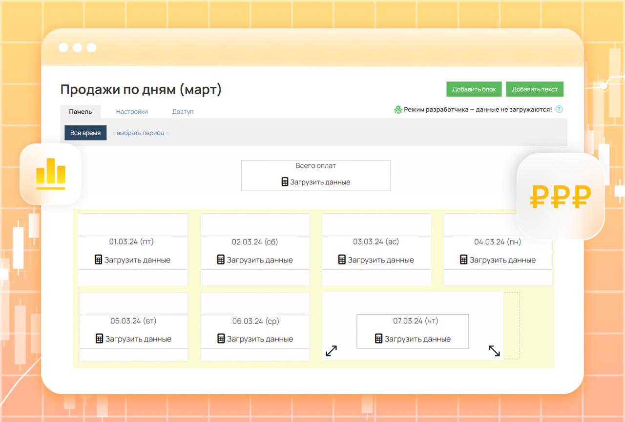 При создании дашбордов не обязательно ждать, пока загрузятся все данные — просто включите режим разработки и расставьте блоки.