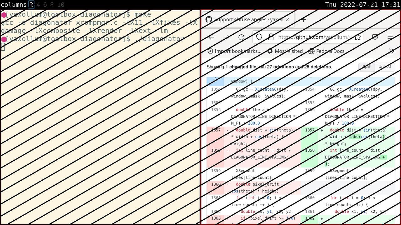 diagonator – уникальный инструмент, что рисует диагональные линии на экране, как будто зачёркивая его, чтобы вы могли отдохнуть от компьютера