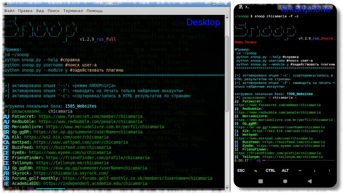Snoop – Инструмент для поиска никнеймов/юзернеймов/vanity-id и прочего на основе открытых данных