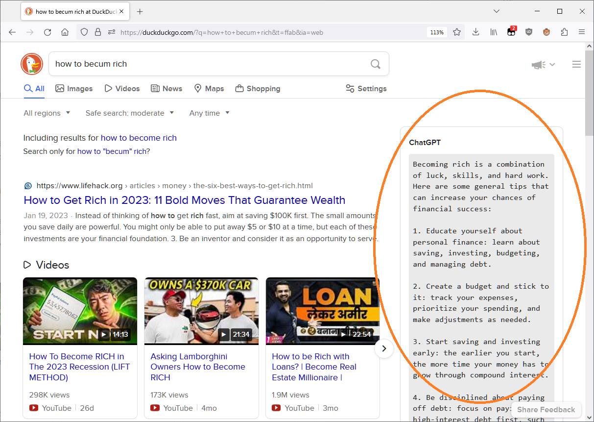 DuckDuckGPT – пользовательский JavaScript который добавляет ответы ChatGPT в поисковую систему DuckDuckGo