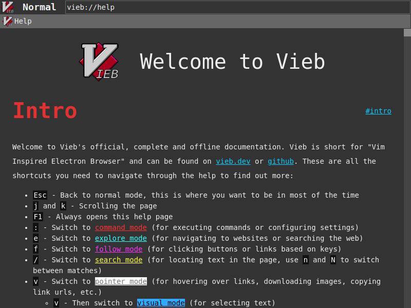Vieb – крайне минималистичный веб-браузер, подобный Vim