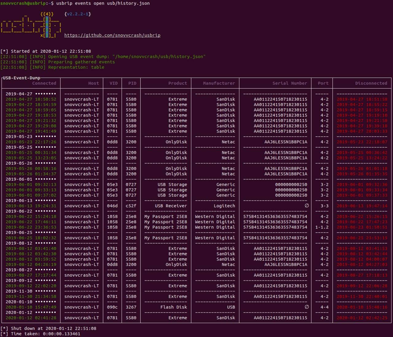usbrip – консольная утилита для восстановления истории подключения USB-носителей по их метаданным и VID (Vendor ID) и/или PID