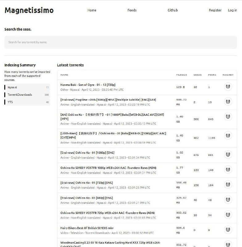 Magnetissimo — веб-приложение, которое индексирует все популярные торрент-сайты и сохраняет магнитные ссылки в вашей локальной базе данных