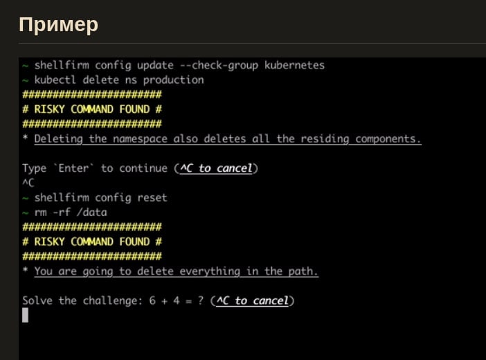 Shellfirm – полезный инструмент, что перехватывает любые «рискованные» шаблоны команд GNU/Linux и показывает предупреждение защищая систему от необдуманных действий
