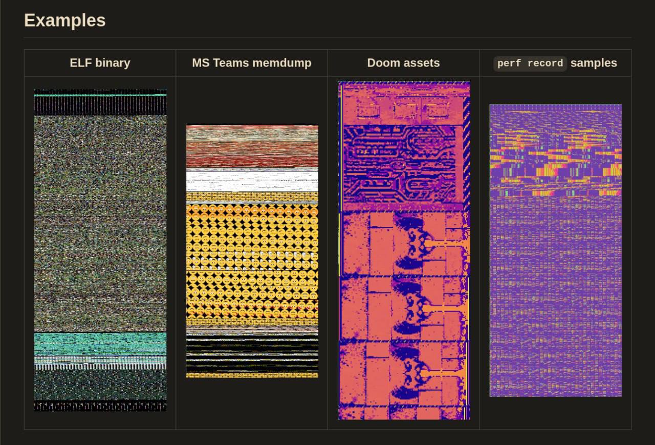 Он раскрашивает байты в соответствии с разными правилами и отображает их как пиксели в прямоугольной сетке