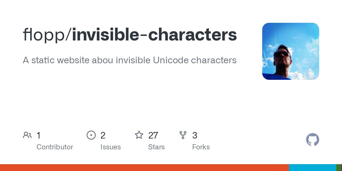 invisible-characters — репозиторий, который содержит сборник невидимых символов юникода.
