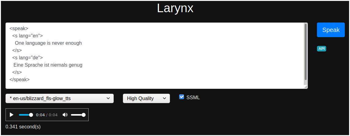 Larynx – Автономная сквозная система преобразования текста в речь с использованием gruut и onnx (архитектура). Доступно 50 голосов на 9 языках.