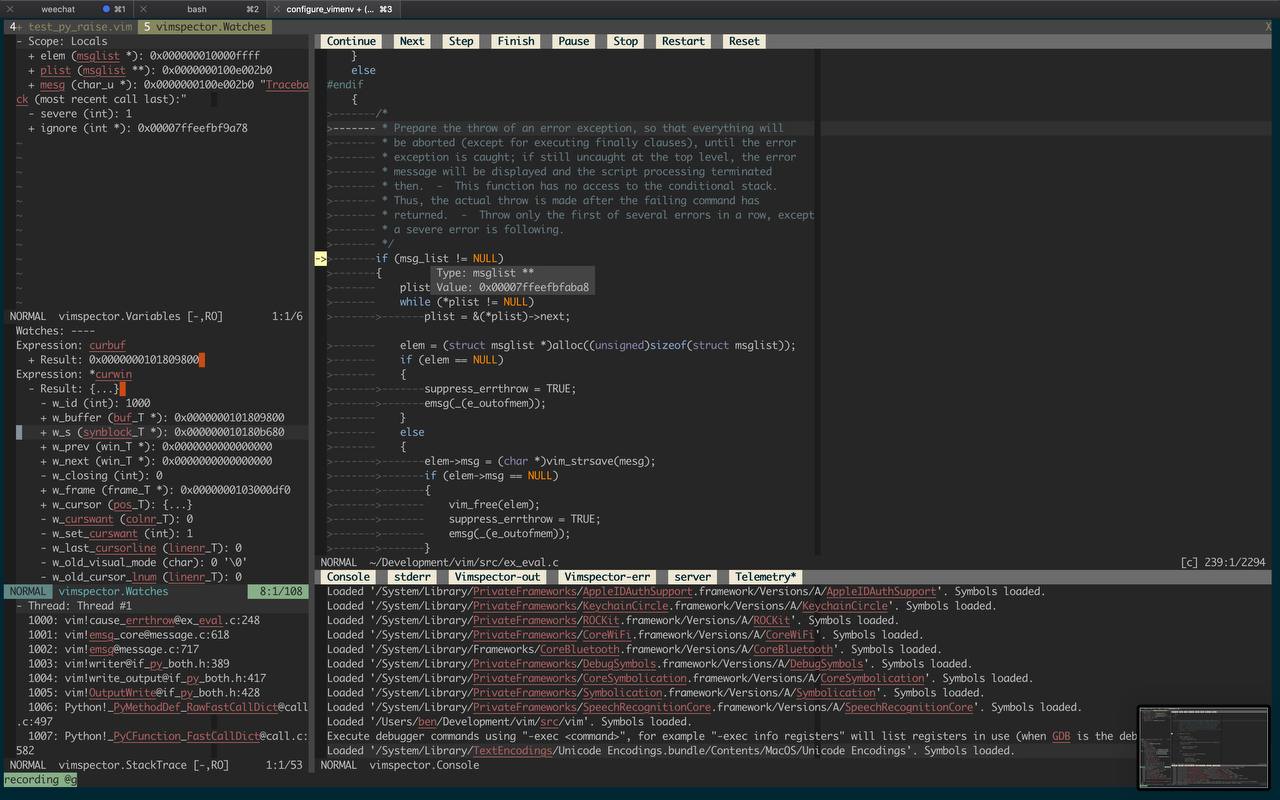 vimspector – плагин на Vim, который позволяет дебажить код с поддержкой большого количества языков