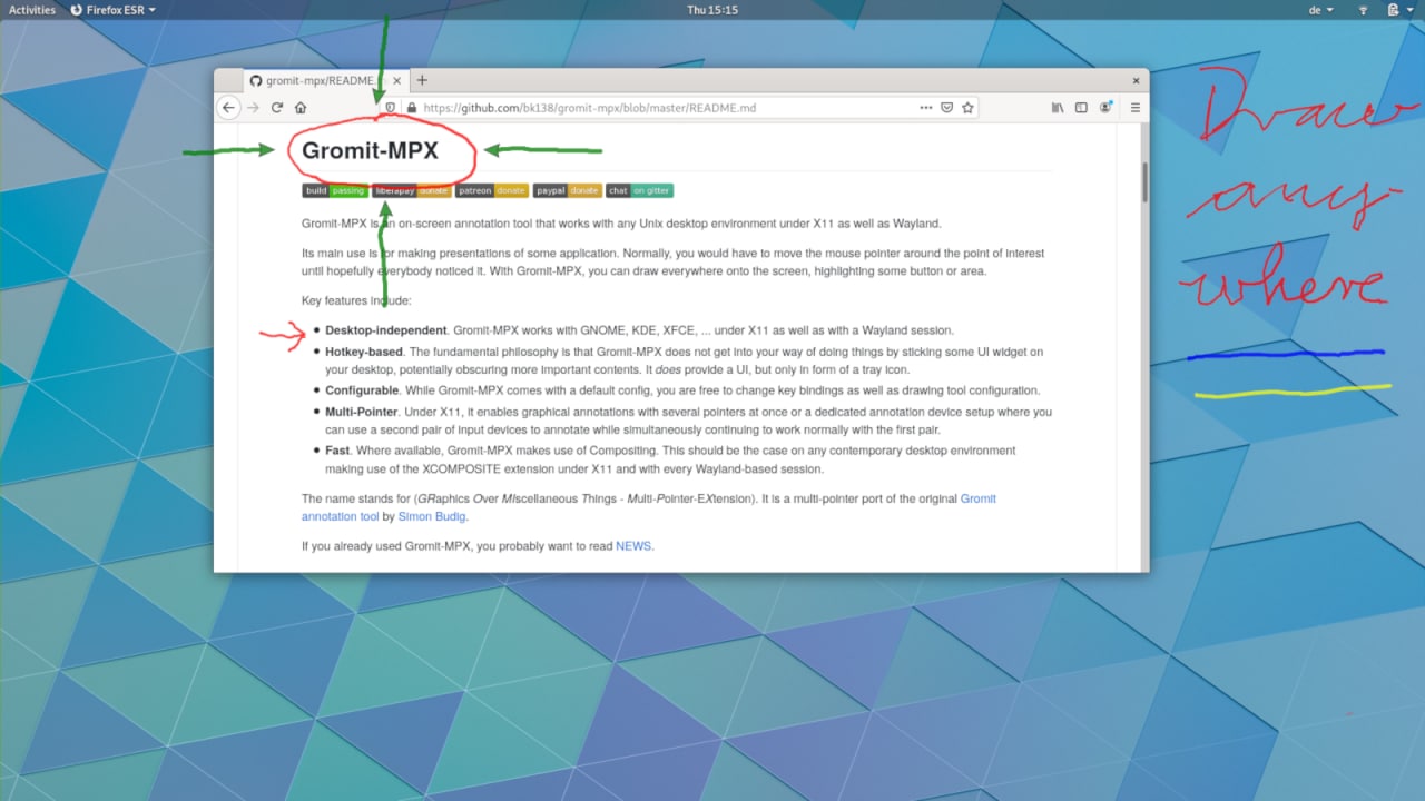 Если коротко, Gromit-MPX позволяет рисовать где угодно на экране рабочего стола GNU/Linux