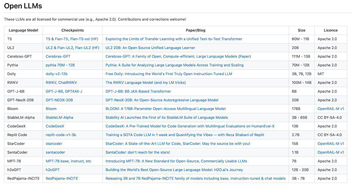 Open LLMs – список открытых LLM (больших языковых моделей), доступных для коммерческого использования