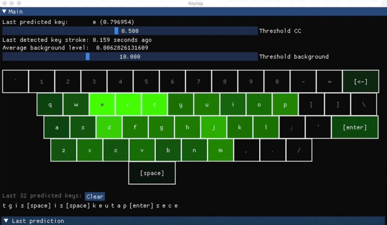 Keytap – Очень интересный инструмент, он может угадывать нажатые клавиши клавиатуры, только проанализировав звук, снятый с микрофона компьютера.
