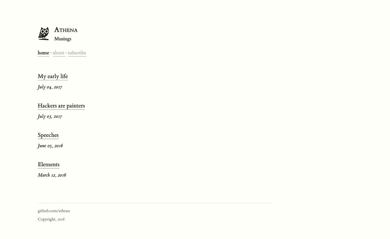 athena – элегантный, минималистичный, простой генератор статических блогов, написанный на Python