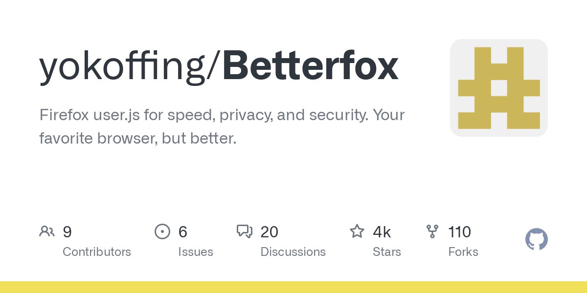 Он направлен на улучшение настроек браузера для пользователей, заботящихся о конфиденциальности. Кроме того Betterfox способен значительно увеличить скорость просмотра Firefox.