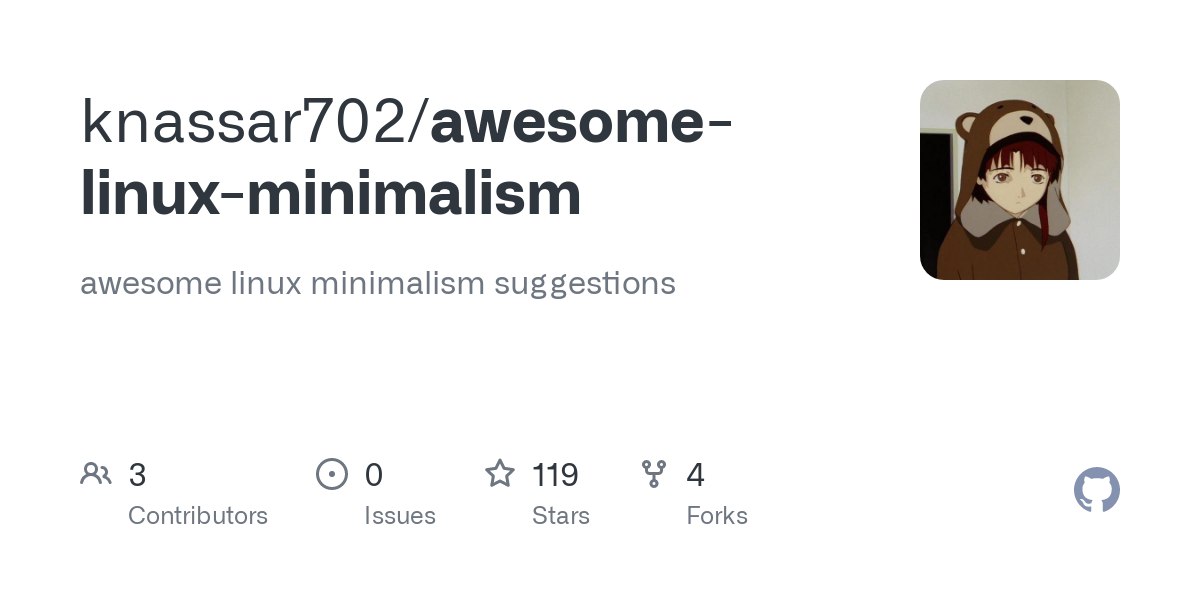 awesome-linux-minimalism — тщательно подобранный список утилит для внесения минимализма в ваш дистрибутив GNU/Linux.