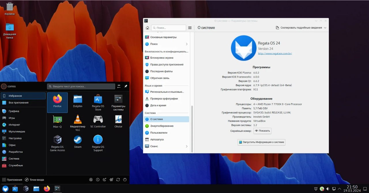 Он включает магазин Regata OS для установки приложений и игр, готовую интеграцию с Google Drive, поддержку игрового режима через графический API Vulkan, обширную библиотеку игр на портале Regata OS Game Access, поддержка настройки гибридной графики в ноутбуках и легкая передача файлов между компьютером и смартфоном.
