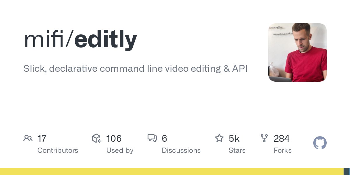 Editly — это инструмент и платформа для нелинейного редактирования видео с использованием Node.js и ffmpeg.
