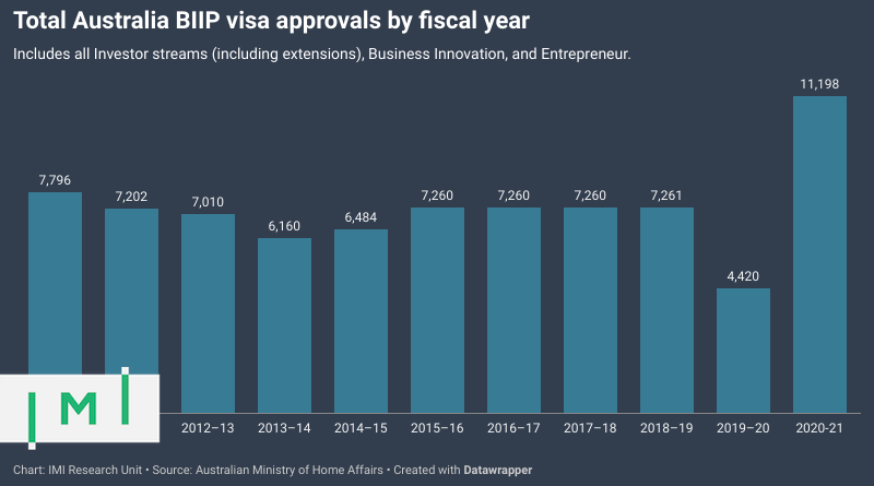 Однако 89% одобрений по программе BIIP было выдано заявителям, которые физически находились в Австралии на момент подачи заявления.