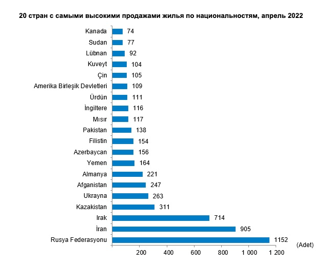 В годовом исчислении апрель 2022 года прибавил 58% в сегменте продаж иностранцам. Россияне, а также украинцы и казахи чаще всего выбирают жильё в Стамбуле, Анталье и Анкаре.