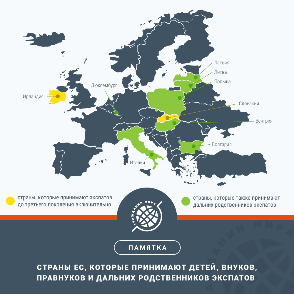 17 стран Европейской экономической зоны (ЕЭЗ) предлагают гражданство внукам, правнукам и даже более отдаленным потомкам своих граждан. Рассмотрим те страны, которые ждут не только детей и внуков экспатов, но и правнуков.