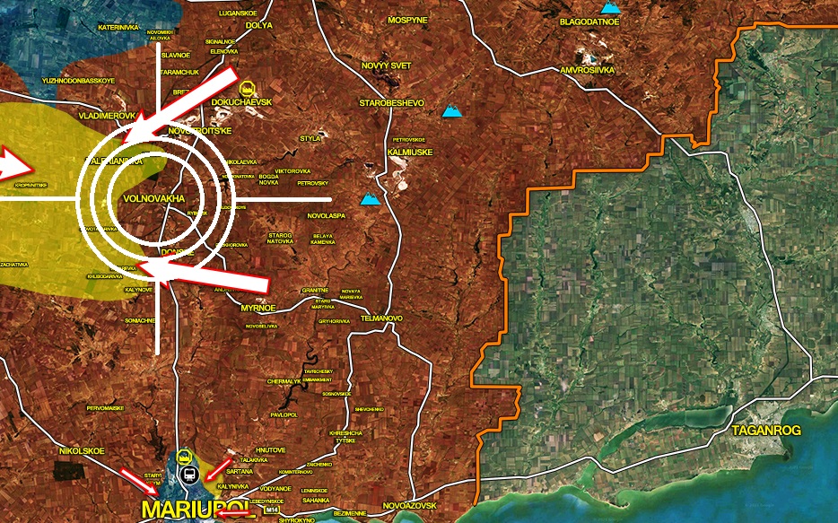 Министерство обороны России официально объявило, что город Волноваха (между Донецком и Мариуполем), один из ключевых пунктов обороны вооруженных сил Украины на востоке страны, теперь полностью находится под контролем российских подразделений и подразделений ДНР. ДНР также взяла под контроль населенные пункты Ольгинка, Великий-Анадол и Зеленый Гай. Продвижение вглубь на этом участке фронта составило до 6 километров.