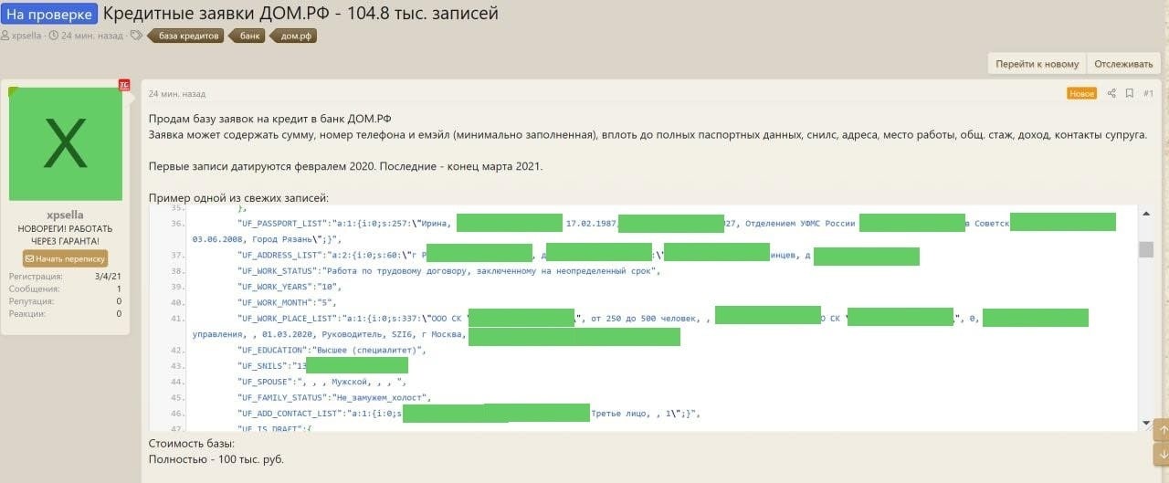 Произошла крупная утечка данных пользователей, которые подавали запрос на кредит в банк «Дом. РФ»