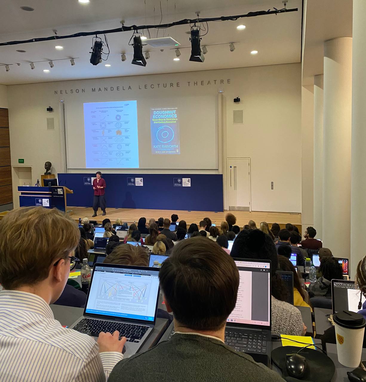 В итоге, на него записалось больше 500 человек и это стало проблемой — найти помещение, так как у Kate и инициативной группы было желание сделать первый большой оффлайн курс после Ковида. Они сделали второй раунд регистрации с ограничением в 300 мест, а помещение на такое количество предоставила Said Business School — бизнес-школа Оксфорда.