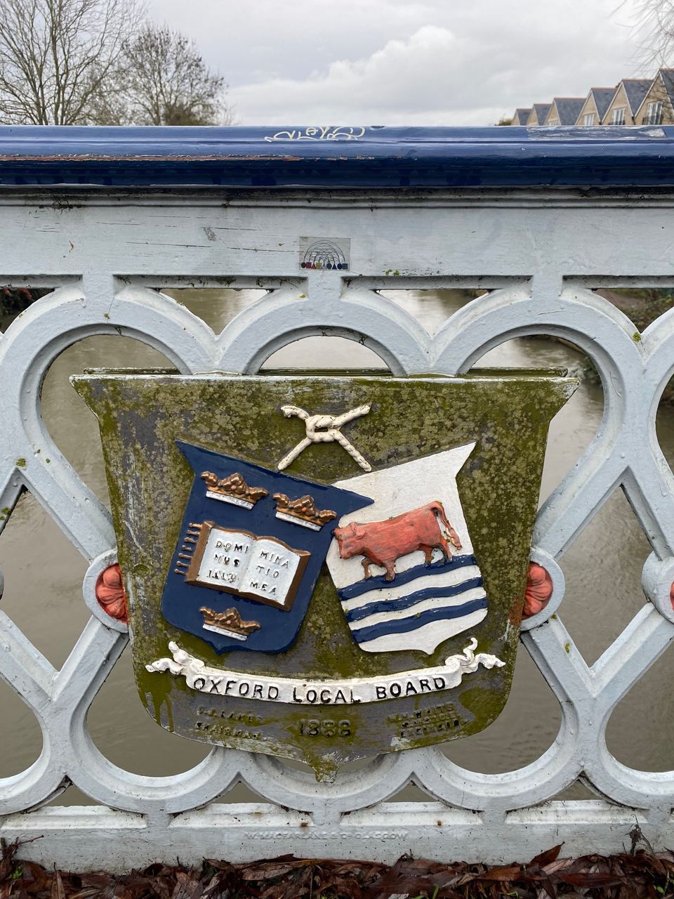 На городском гербе бык, символ города, давший ему название (Ox-ford — переводится как “бычий брод” и здесь было место где скот переходил Темзу).