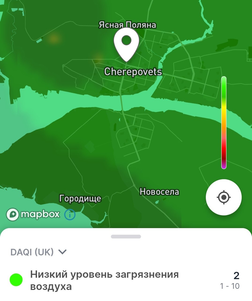 В Череповце значительно снизился уровень загрязнения воздуха. Согласно данным со спутника, сегодня уровень загрязнения составляет 2 балла из 10. Почти оздоровительный курорт.