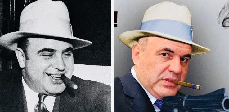 Кстати, о налогах. Находят, что наш новый премьер, он же великий налоговик, немного похож на Аль Капоне (на фото он справа).