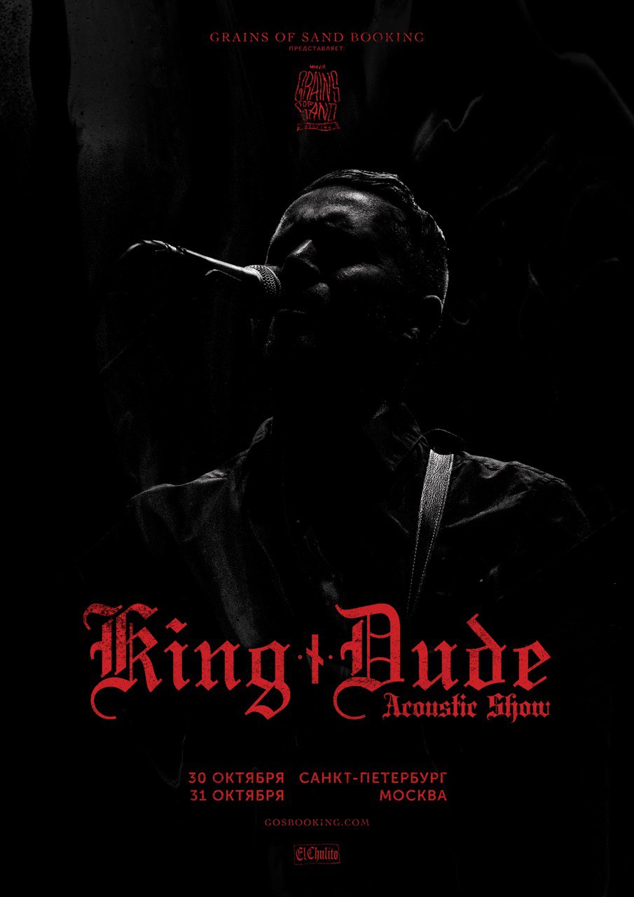 Осенью в Россию с акустическими концертами возвращается KING DUDE, американский музыкант-люциферианец, исследователь темных территорий в самых разных жанрах: от неофолка до блюза. На этот раз выступления Ти-Джея Кауджилла пройдут не в привычных андеграунд-клубах, а на более приличествующих их почти проповедческому характеру площадках (отечественные церкви, к сожалению, отказали).