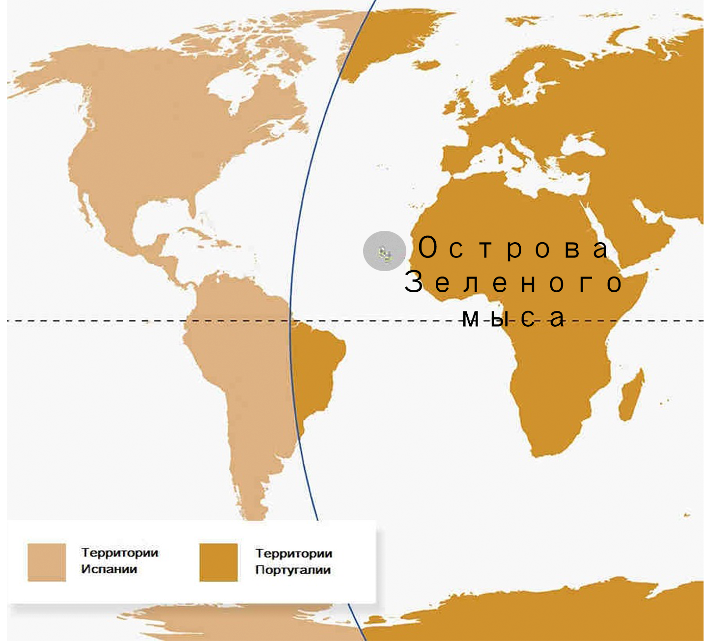 Папа Александр VI, 3 мая 1493 года объявил, что все земли, которые Кастилия открыла или откроет западнее меридиана, проходящего в 100 лигах (418 км) западнее островов Зелёного Мыса (Кабо Верде), должны принадлежать ей, а новые земли, которые будут открыты в районах восточнее этой линии — Португалии, причём это правило не распространялось на территории, уже находящиеся под владычеством христианских стран.