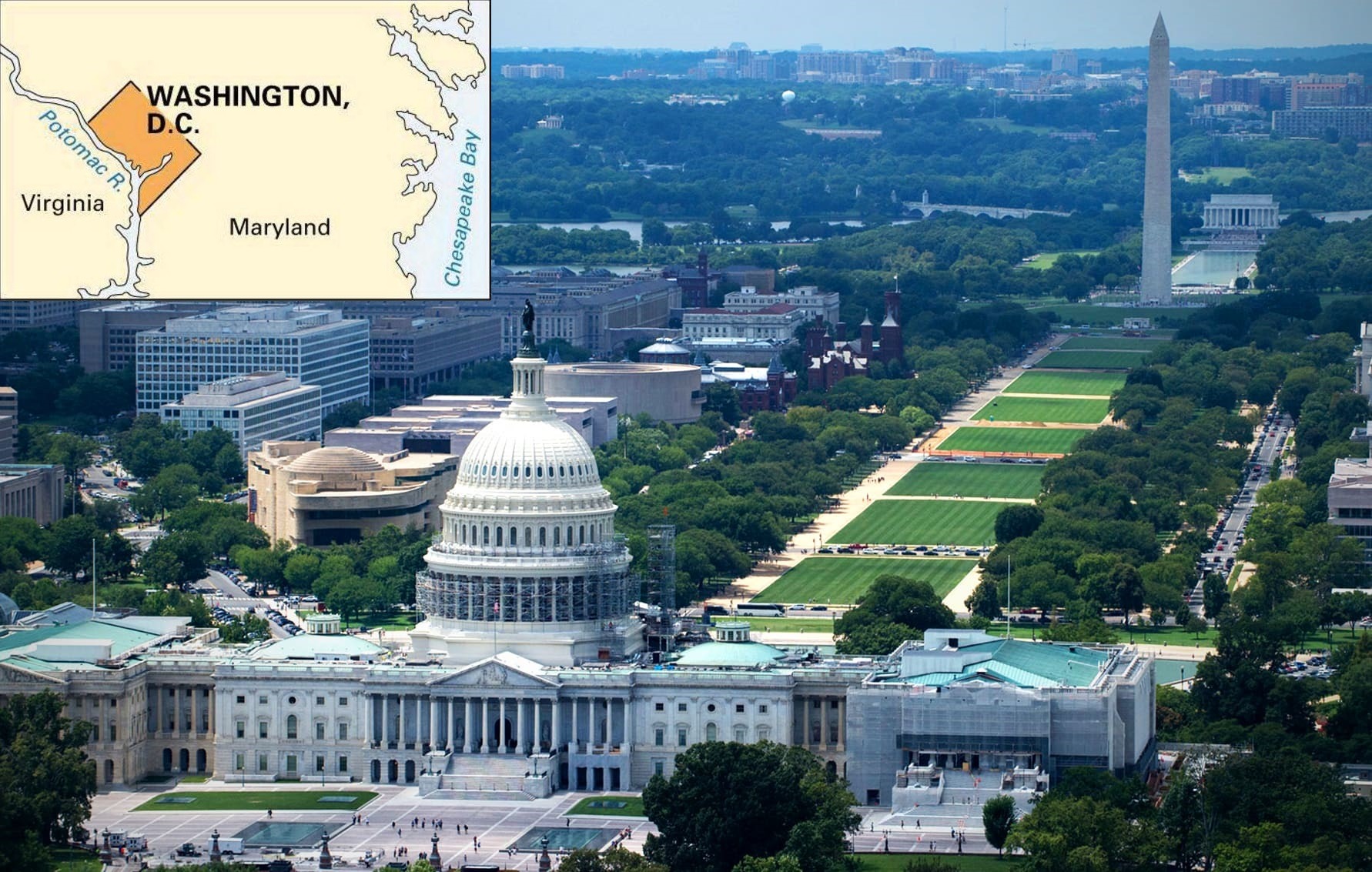 Закон о местопребывании от 16 июля 1790 года предусматривал закладку города площадью 26 квадратных километров на реке Потомак в той области, которую выберет президент Вашингтон.