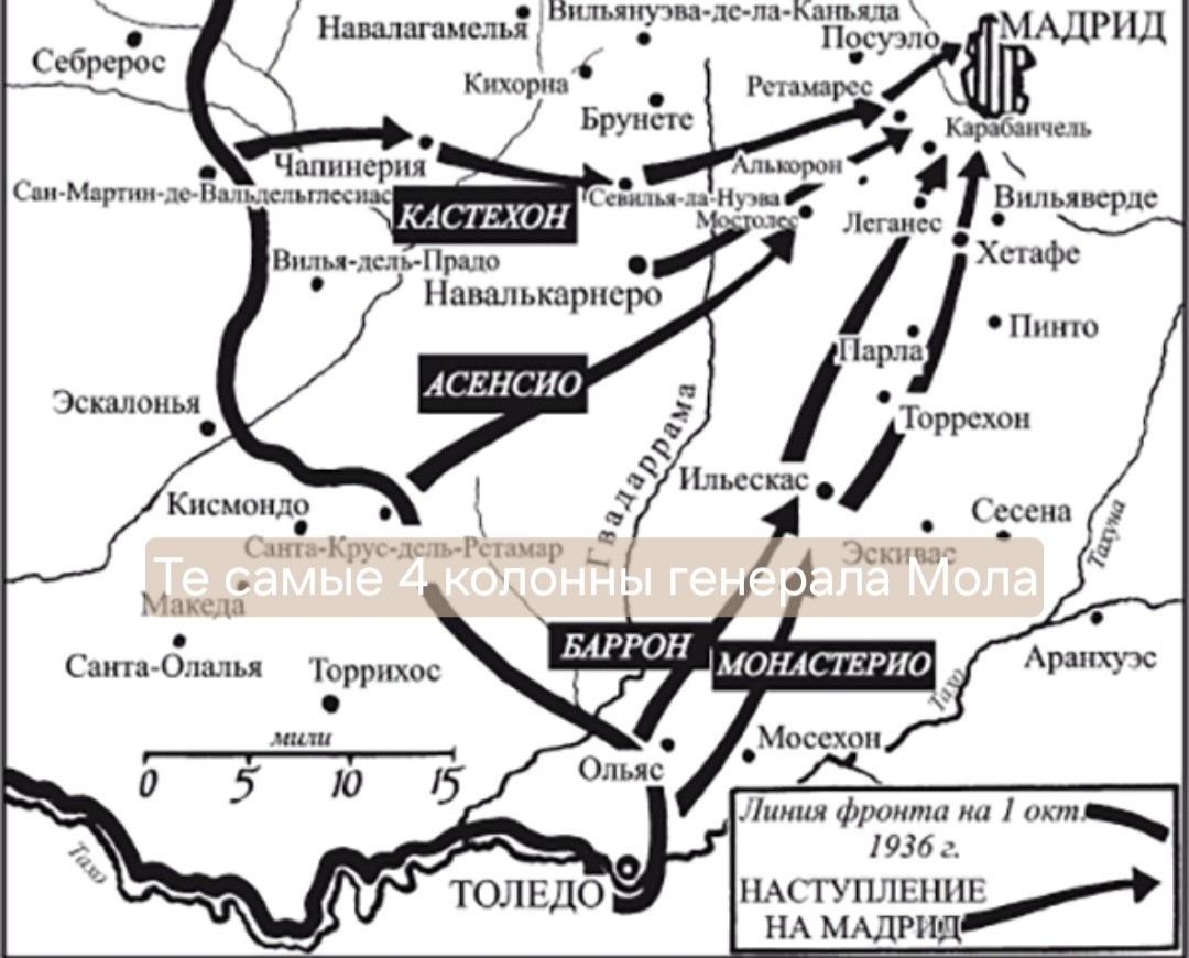 В 1936 году во время гражданской войны в Испании один из генералов Франсиско Франко Эмилио Мола готовился к штурму столицы.